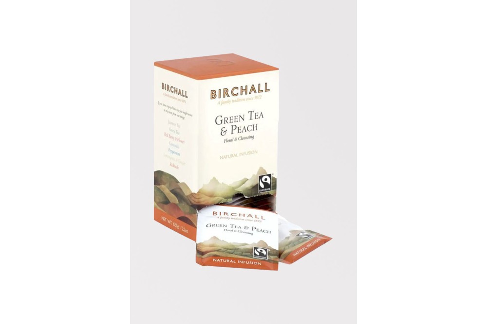 Birchall Fairtrade Green Tea & Peach 25 Envelopes